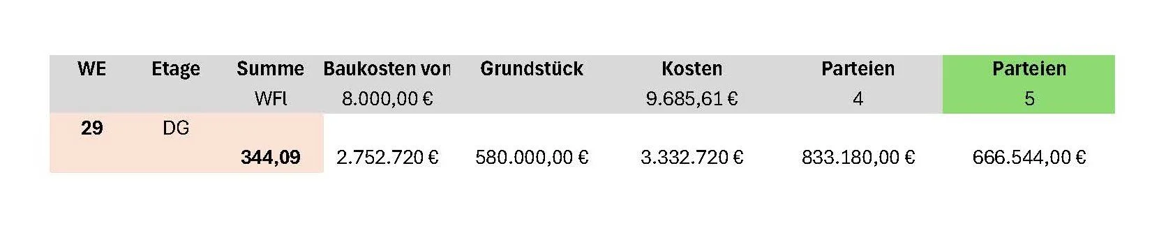 Diese Schätzung beinhalet Herstellungskosten, Architekten- und Fachplanerhonorare sowie Baugruppenkoordination. Ebenso ist eine pauschale Summe für den Innenausbau enthalten.